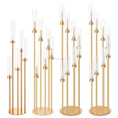 Portavelas de cristal dorado moderno de lujo Decoración de mesa de boda y graduación proveedor de boda moderno