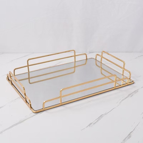 Luxe Franse Elegante Goud Gegalvaniseerde Metalen Vierkante Spiegel Dienblad High-End Home Decor Bruiloft Decor Lade